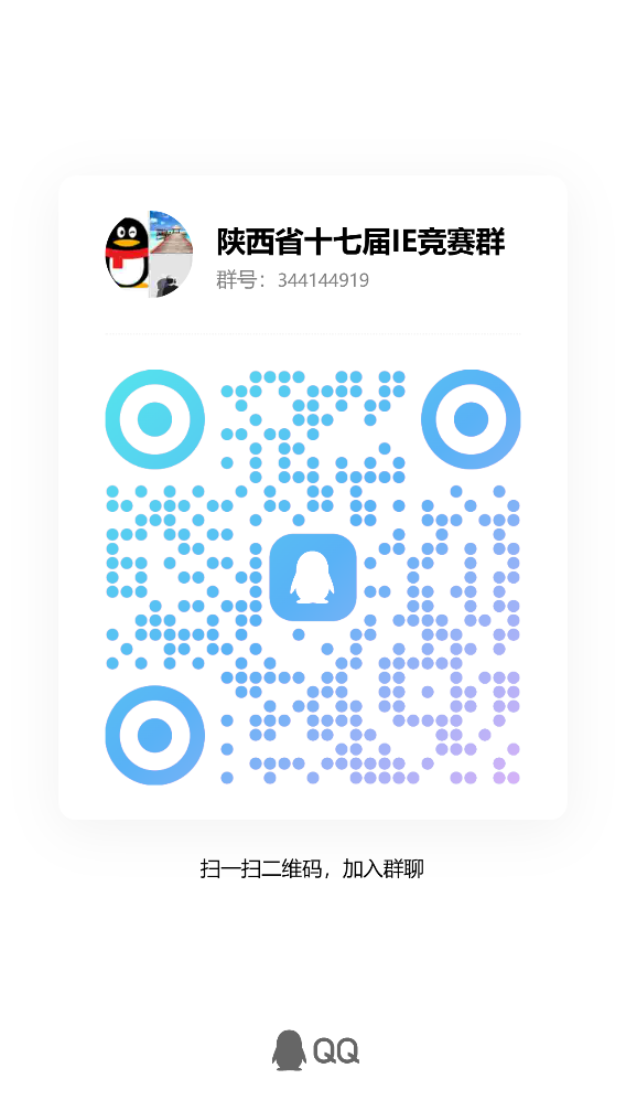 2.报名方式:qq扫描下方二维码报名,并加入“陕西省第十七届IE竞赛小组”校赛官方QQ群:344144919。