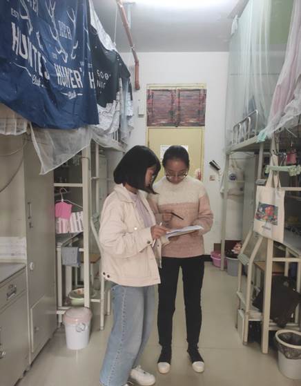 研究生秘书侯思雨老师及各年级学生干部对13公寓楼共计102间宿舍进行了全面检查。