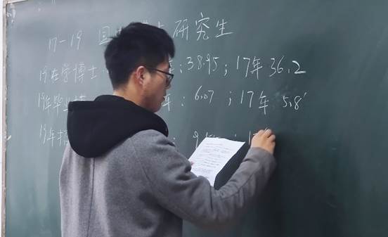 随后,博士研究生楚超勤与大家讲述了自己的求学经历,并就考研学校选择、公共课及专业课复习、复试准备等内容分享了自己的经验。并通过分析、对比2017至2019年博士生招生数目、在读生数目和毕业数目,让同学们确切而真实地了解了攻读博士研究生的必要性。