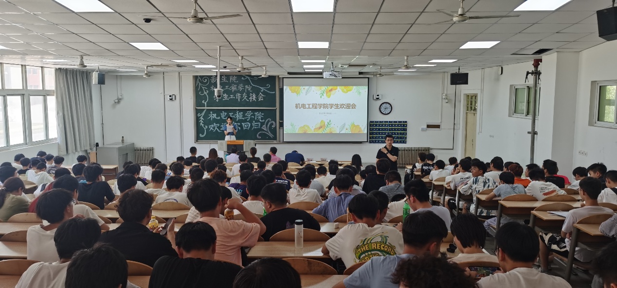 在教1-101、教1-102举办了2020届学生欢迎会暨学生交接大会,学院党委副书记姚敏茹,副院长王洪喜,各专业负责人,机电学院全体辅导员,新生院辅导员朱先彬、杜堃以及机电学院全体2020级学生参会。
