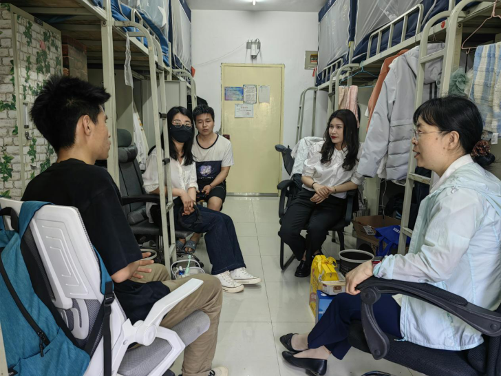 走访中,党委副书记姚敏茹详细询问了学生的生活情况、学习情况和就业方向,鼓励学生积极参加学校、学院的各类活动,拓宽信息来源,提升专业素养,并就内嵌式就业方向为学生做了详细解读。同时,结合24届考研形势及意向报考院校情况,与学生深入交流,给与了学生最精准、最专业的专项指导。