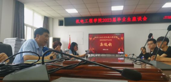 于工2-310举行了2023届毕业生座谈会,来自不同专业的毕业生代表齐聚一堂,分享他们的个人成长和收获,并为学院的高质量发展建言献策。学院党委书记路金龙、院长王洪喜、党委副书记姚敏茹、教师代表、毕业年级辅导员参加了此次座谈会。