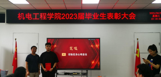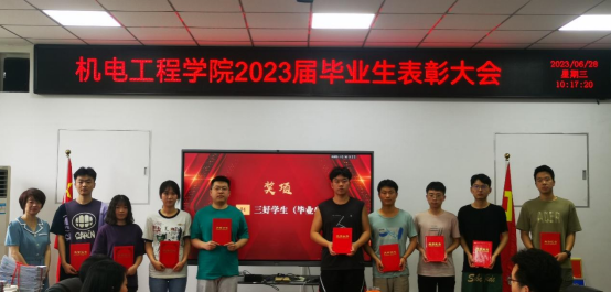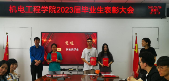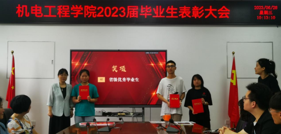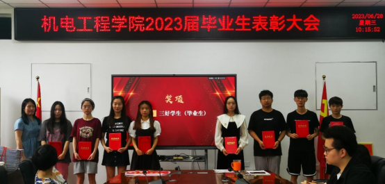 2023届毕业生表彰大会在工2-310隆重召开。学院党委书记路金龙、院长王洪喜、学院党委副书记姚敏茹、教师代表以及毕业年级辅导员参加了此次表彰大会,与会领导和老师分别向优秀毕业生颁发荣誉证书。