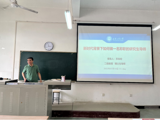 苏俊宏教授主要从导师的使命与定位,导师的职责、胸怀和素质,如何做一个称职的研究生导师,我做研究生导师的体会等四个方面进行培训。他认为,研究生导师在研究生培养教育中起着主导作用,需要做到“教书”和“育人”相统一,研究生导师要积极承担对学生传授知识、培养能力、塑造人生观的职责。苏教授总结了研究生培养、学位论文常见问题,并引用正反面实例,强调了导师第一责任人职责的重要性,并对导师们就如何提升研究生学位论文质量,提高研究生培养质量提出了宝贵的建议。