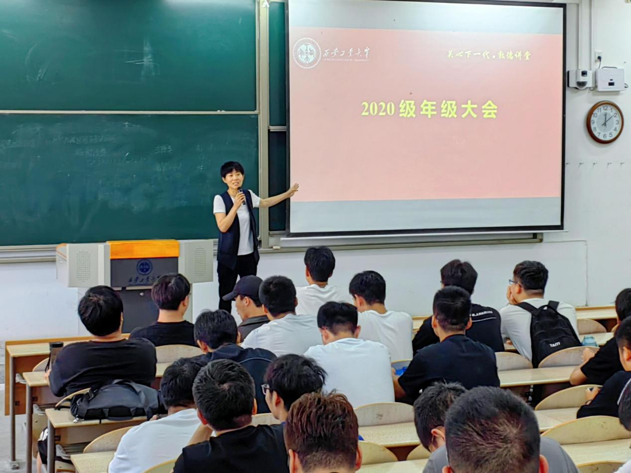 在教1-101召开年级大会,本次会议由2020级辅导员主持,2020级全体学生参加本次会议。