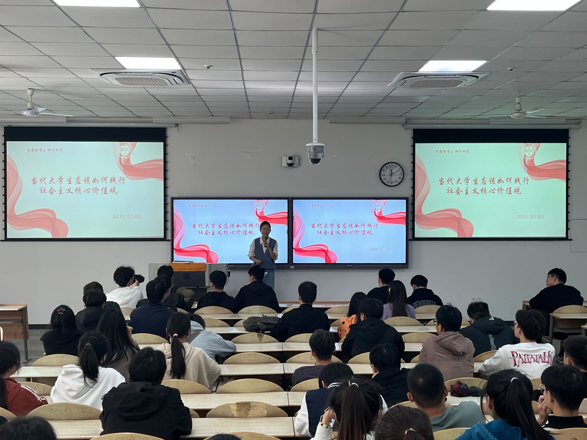 在教二-101举办了一场社会主义核心价值观思政教育课。此次讲座由辅导员马芳荣主持,各年级学生代表参与。