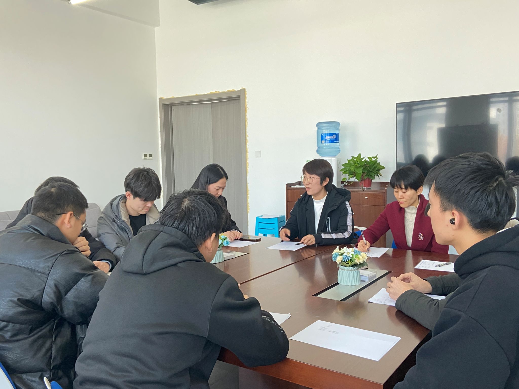 最后,组织学生体验了一次完整的无领导讨论的流程。在讨论结束后,两位老师指出了他们在团队合作和个人表现方面的优点和不足,并提出了改进的建议和方法。