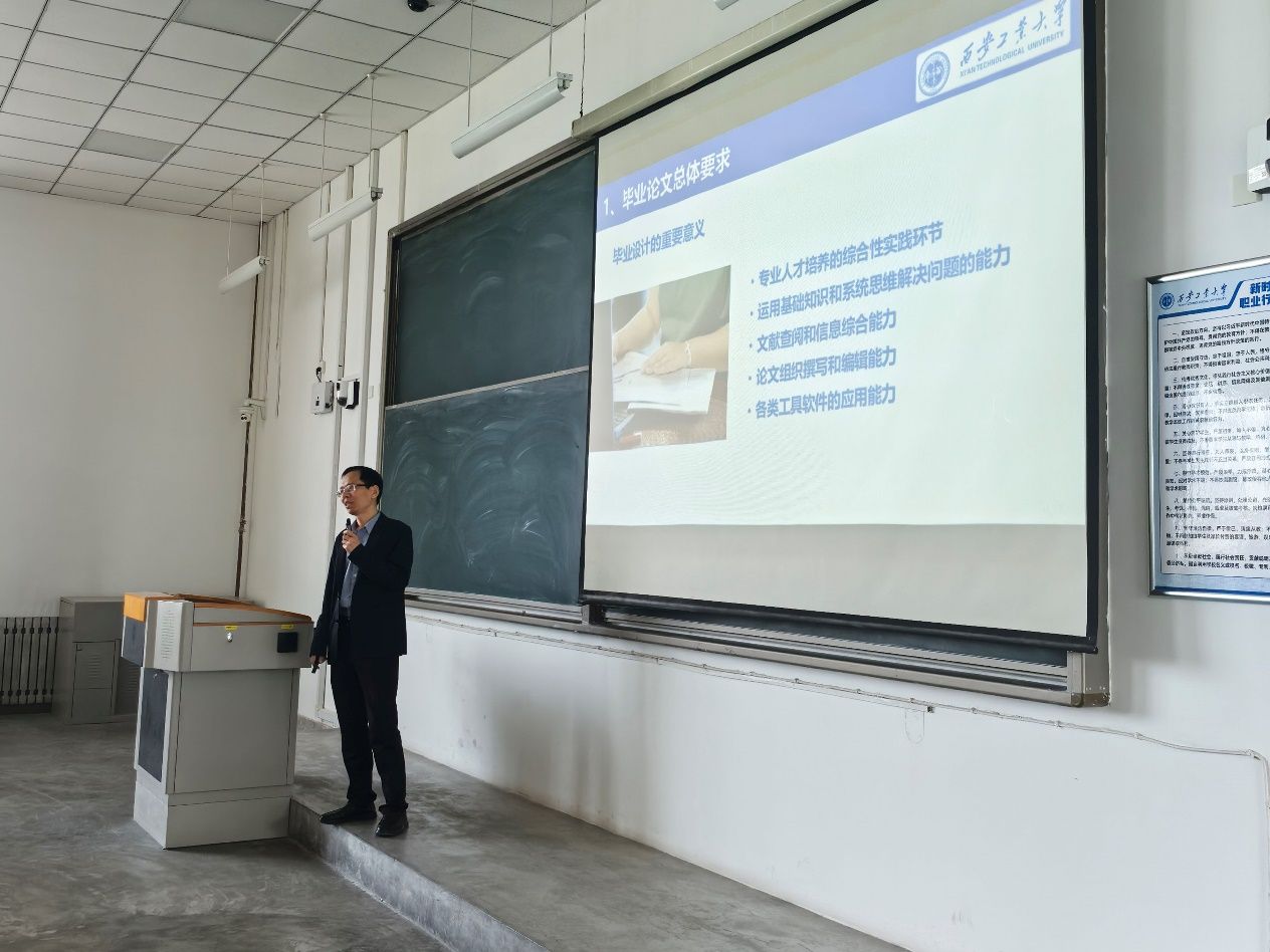 在教1-403和教1-404成功举办了2026届本科毕业生论文撰写指导会。本次会议旨在帮助毕业生明确论文撰写要求,掌握科学的研究方法,提升论文质量,为顺利完成毕业设计奠定基础。学院特邀机械设计制造及其自动化专业(卓工)专业负责人蒋新广副教授和机械设计制造及其自动化专业(本硕连读、中俄合作)专业负责人彭润玲教授担任主讲嘉宾,毕业班辅导员文勃组织全体毕业生参加了会议。